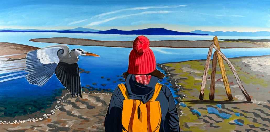 The landscape is never a backdrop for me. It is an active presence. Canada’s geography, weather, and vastness shape how we move through the world, and I try to reflect that lived experience in my paintings. The figures don’t dominate the land or pose within it. They stand in relation to it, sometimes dwarfed by scale, sometimes absorbed into it, always responding to place.