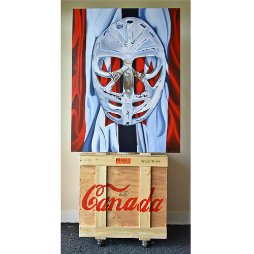 Goalie’s Mask: red, white & Dryden (The Goalies Mask Painting), c. 2011 Acrylic 48 x 36 x 1.5 in – Collection of The Artist – Brandy Saturley