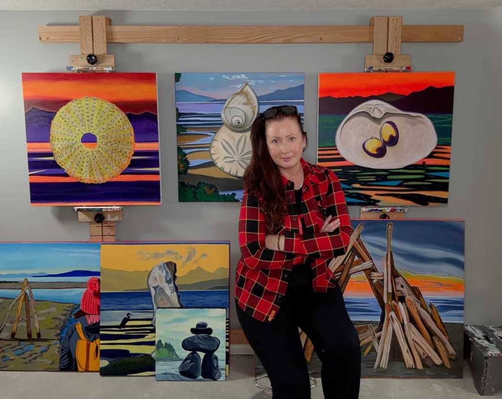 Brandy Saturley with her West Coast beach paintings series, November 2025